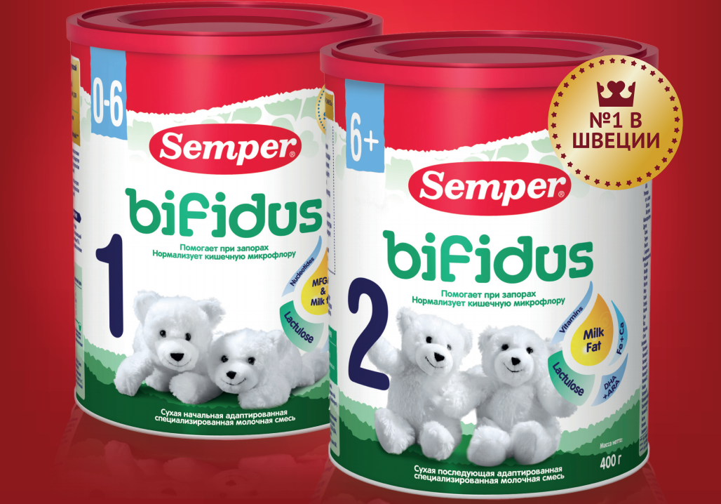 Бренд Semper официально представлен на российском рынке с 1997 года. Semper Bifidus имеет сбалансированный состав и содержит лактулозу — это помогает обеспечить комфортное пищеварение ребенку [15]. В линейке есть смеси для малышей с рождения и с 6 месяцев.